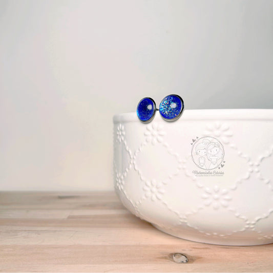 Boucles d'oreilles Clous bleues pailletées