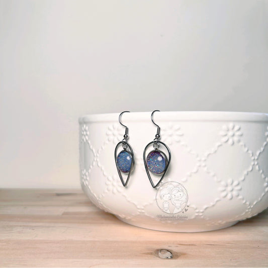 Boucles d'oreilles Pendantes gouttes bleues pailletées