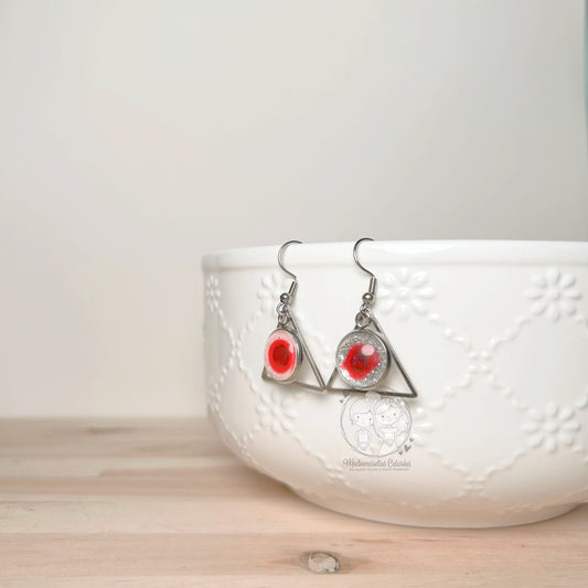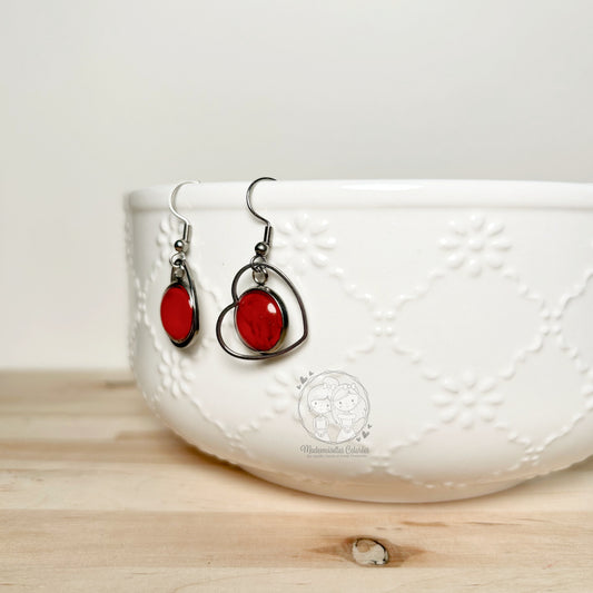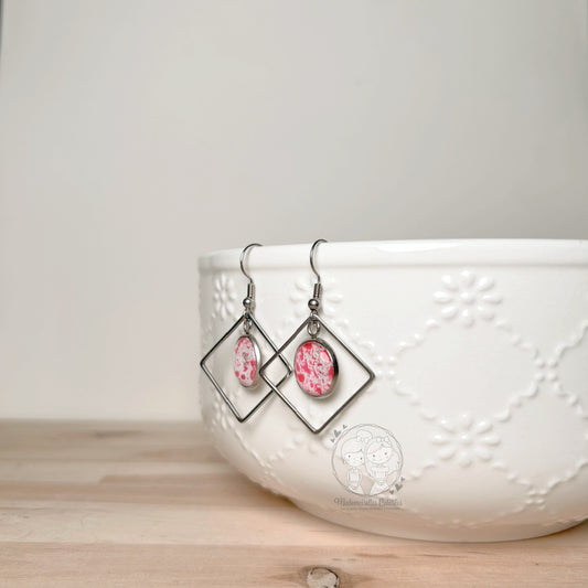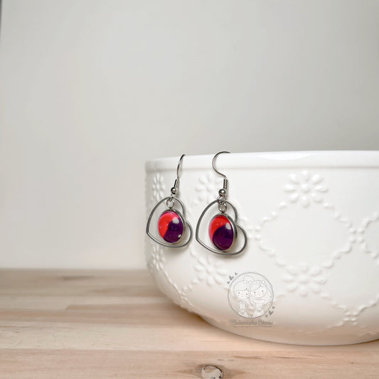 Boucles d'oreilles Pendantes géométriques rouge/mauve
