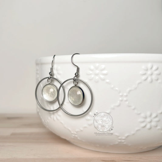 Boucles d'oreilles Pendantes gouttes blanches pailletées