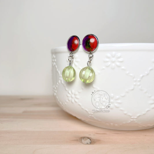 Boucles d'oreilles Pendantes verte/mauve/rouge