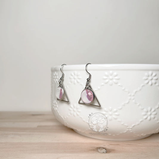 Boucles d'oreilles Pendantes géométriques blanches & rose