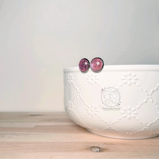 Boucles d'oreilles Clous majenta pailletées