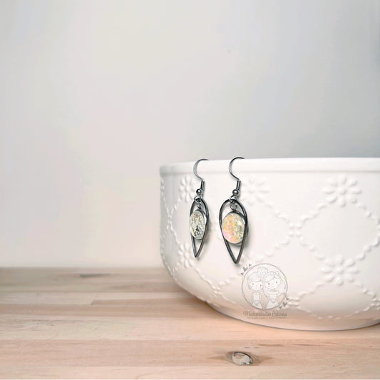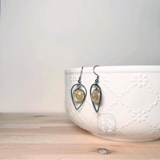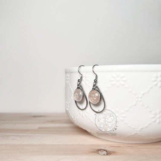 Boucles d'oreilles Pendantes gouttes blanches pailletées